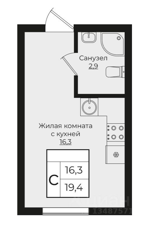 Общая площадь19,4 м²