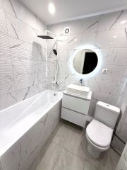 Общая площадь - 48,7 м2, жилая - 28,2 м2, кухня - 7,6 м2. Санузел совмещенный.