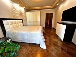 Пространство и свет: Просторная квартира площадью 296,7 м² с жилой площадью 165 м² расположена на 23-м этаже 24-этажного кирпичного дома. В квартире 4 изолированные комнаты, кухня площадью 14 м², раскошный дизайнерский ремонт, балкон и лоджия, а также три санузла. Окна выходят и во двор, и на улицу.