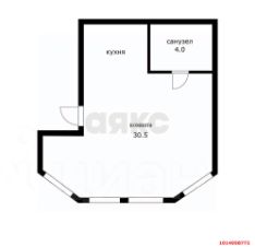 Большая комната с выделенной зоной кухни, витражное остекление, санузел совмещенный.