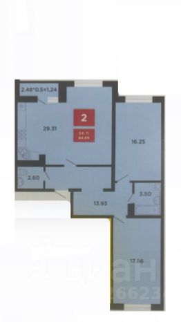 Это двухкомнатная квартира или евро-трешка, как принято сейчас называть, то есть квартира с большой кухней-гостиной.