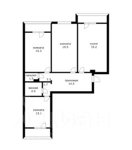 Кухня занимает 19.2 квадратных метра, предоставляя достаточно места как для приготовления пищи, так и для семейных ужинов или дружеских встреч. Имеется теплый пол и множество шкафов для хранения. Из кухни выходит балкон с косметическим ремонтом.
