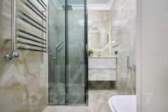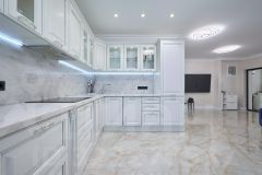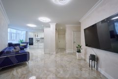 Кухня-гостиная 52 м2, 3 изолированных спальни 22 м2, 16 м2 и мастер-спальня 17 м2. Два отдельных сан.узла и большая гардеробная комната. По всей площади квартиры теплые полы, и шумоизоляция.