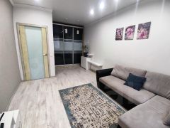 Комфортная планировка: в широкой комнате гардеробная зона, застеклённый балкон из кухни. Квартира на удобном 3-м этаже, сделан современный ремонт, состояние отличное. Остаётся мебель и большая часть бытовой техники.