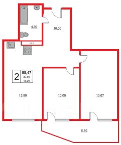 Уникальнaя планирoвкa формата евро три с просторной кухней-гостиной 16м2, огромной, частично витражной лоджией с прекрасными видовыми характеристиками и двумя изолированными комнатами.