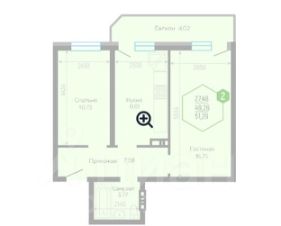 Общая площадь квартиры — 52 кв. м, жилая — 27 кв. м, кухня — 9 кв. м.