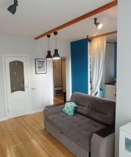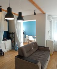 В квартире сделан дизайнерский ремонт, который сразу привлекает внимание. Пространство организовано свободной планировкой, что дает возможность обустроить его под свои нужды. Санузел совмещенный, оформлен в современном стиле. Окна выходят во двор, поэтому в квартире всегда тихо и спокойно.