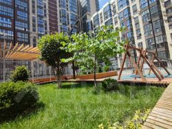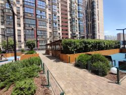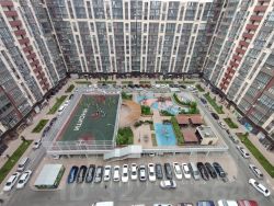 Внутри кварталов дворы на высокой платформе, что позволило организовать закрытую территорию, где нет машин. Это значительно увеличило полезную площадь проекта: на первом уровне обустроены крытые автопарковки, а на втором безопасные детские и спортивные площадки, прогулочные аллеи, зоны барбекю и беседки с точками для мытья посуды и туалетами. На каждом стилобате есть многофункциональное спортивное поле с профессиональным покрытием для игровых видов спорта футбола, баскетбола, волейбола.