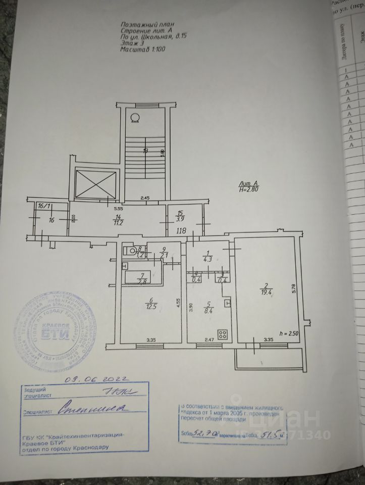 Продается уютная двухкомнатная квартира в одном из самых удобных районов Краснодара — Школьный микрорайон. Общая площадь составляет 51.5 кв. м, с просторной кухней 8.4 кв. м. Квартира расположена на 3 этаже 9-этажного панельного дома, построенного в 1978 году. Высота потолков — 2.5 метра. Из окон открывается вид на улицу, а также имеется балкон, где можно наслаждаться свежим воздухом,наблюдать за белочками,которые бегают прям на уровне этажа.