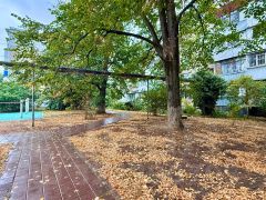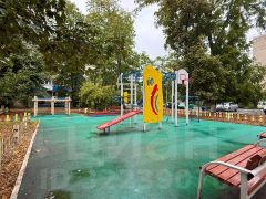 Во дворе дома установлены детские и спортивные площадки, заасфальтирована большая парковка. Вокруг дома множество зеленых насаждений.