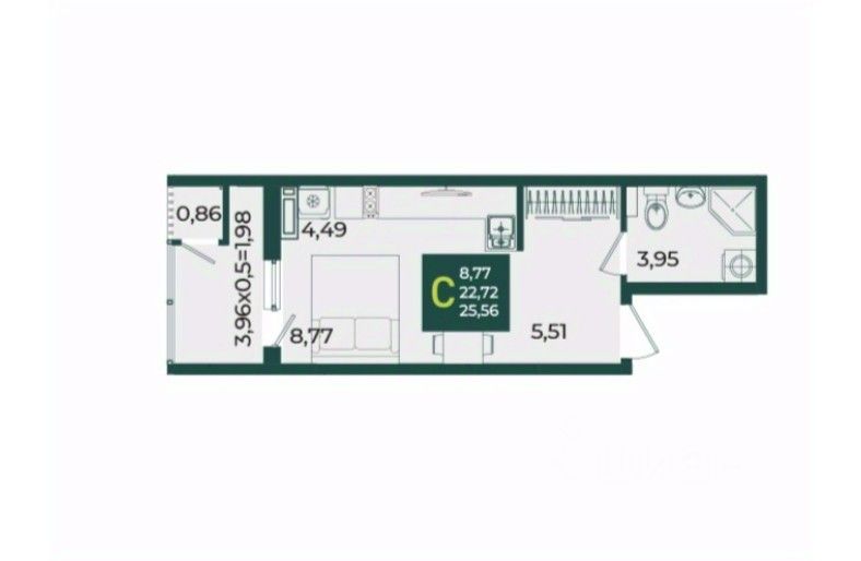 Просторная лоджия 3.96м2 станет отличным местом для отдыха, создания зимнего сада или уютного уголка для работы. Она прекрасно освещена и остеклеа