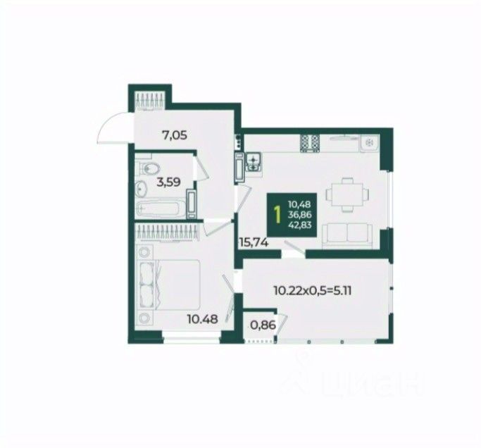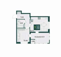 Просторная лоджия 10,22м2 станет отличным местом для отдыха, создания зимнего сада или уютного уголка для работы. Она прекрасно освещена и остеклена