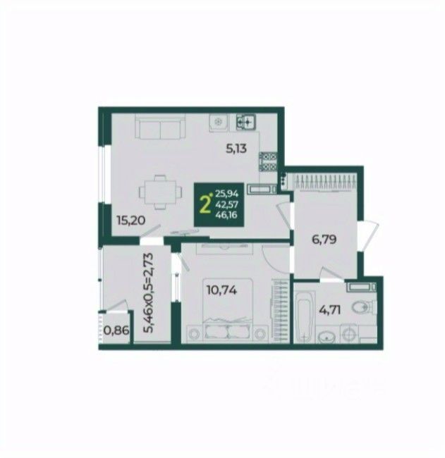 Просторная лоджия 5.46м2 станет отличным местом для отдыха, создания зимнего сада или уютного уголка для работы. Она прекрасно освещена и остеклена