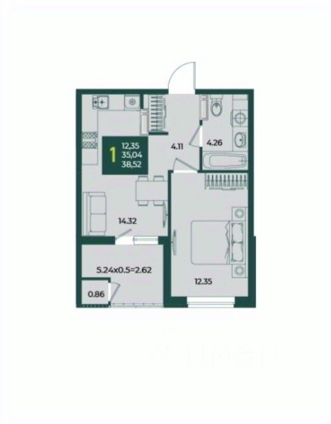 В продаже стильная 1 комнатная квартира с большой кухней 14.32м2 с выходом на лоджию.