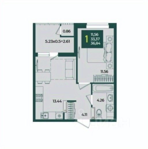 Просторная лоджия 5.23 м2 станет отличным местом для отдыха, создания зимнего сада или уютного уголка для работы. Она прекрасно освещена и остеклена