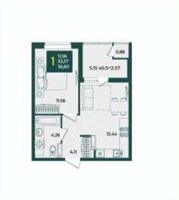 В продаже стильная 1 комнатная квартира с большой кухней 13.44 м2 с выходом на лоджию 5.15 м2