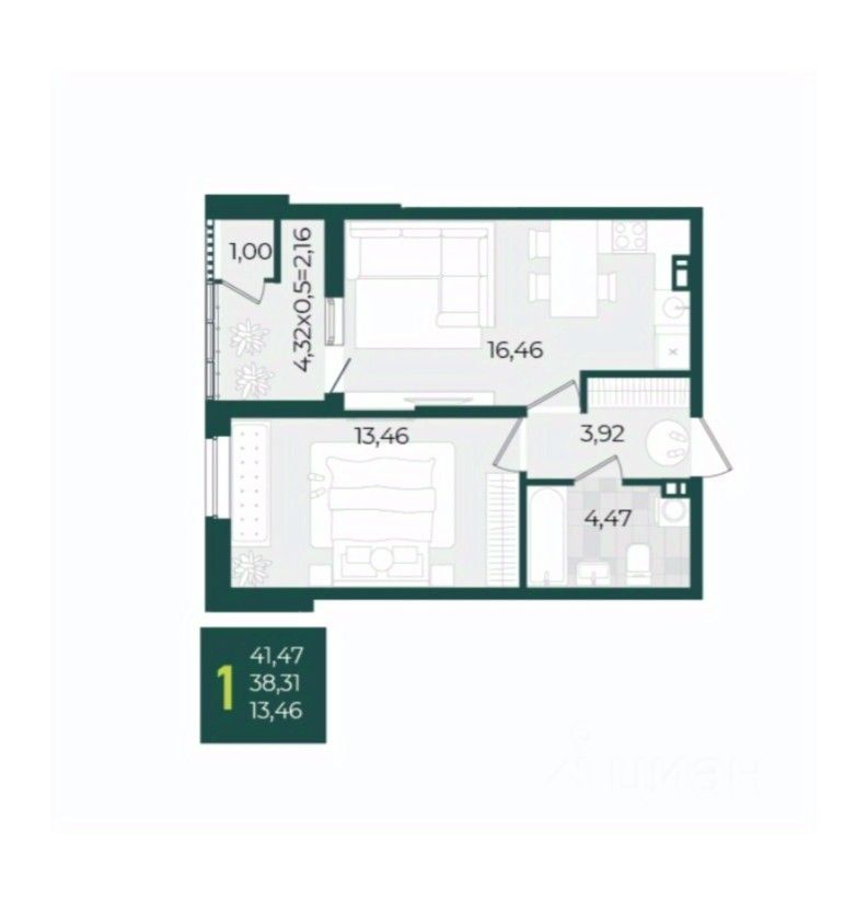 Продаётся видовая 1 комнатная квартира в современном ЖК