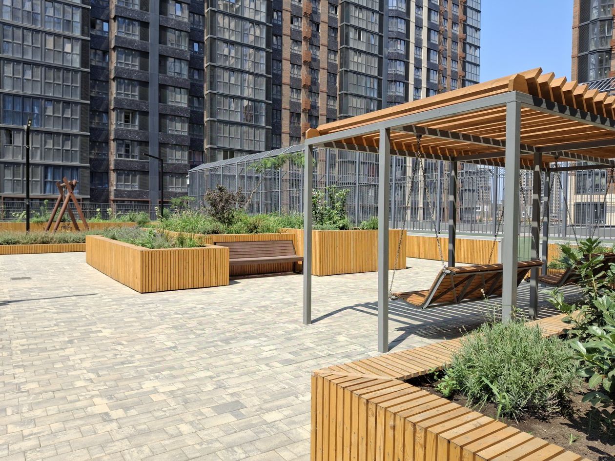 Для детей разных возрастов предусмотрены современные безопасные игровые площадки с использованием высококачественных экологически чистых материалов.