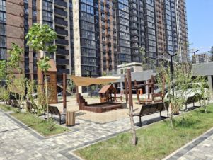Территория с ландшафтный дизайном объединяет в единую концепцию все пространство стилобата.
