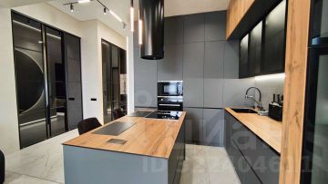 6 В кухне установлена столешница из hpl панели с мойкой нижнего монтажа раковина без бордюров