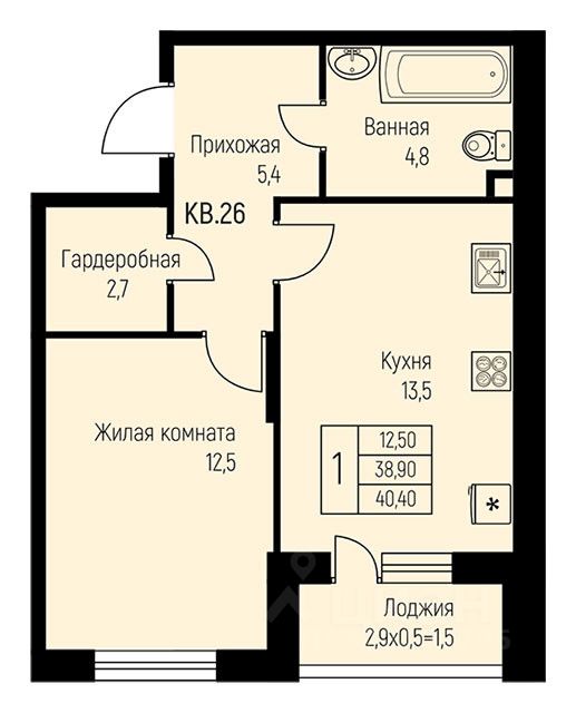 Квартира с продуманной планировкой! Комнаты правильной формы и наличием гардеробной, что для однокомнатной квартиры редкость!