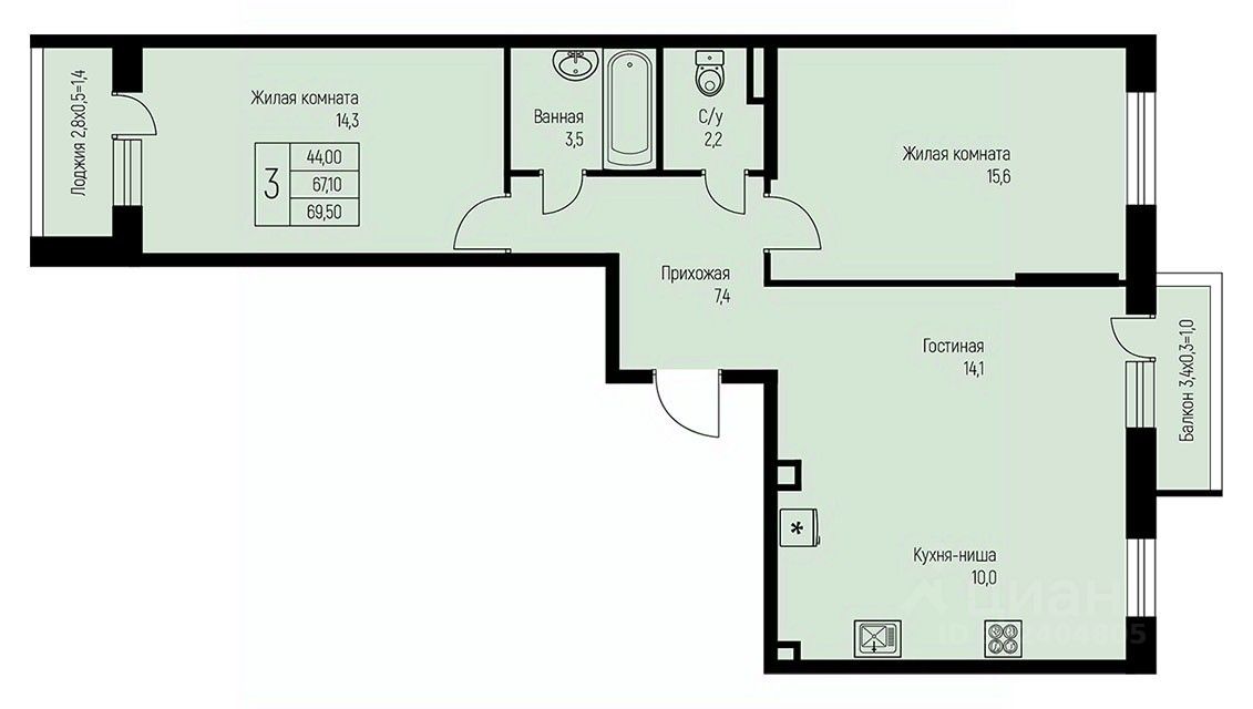 В продаже евротрёхкомнатная квартира с планировкой на 2 стороны света.