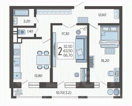 Двухкомнатная квартира с эргономичной планировкой, комнаты правильной формы, просторная кухня, 2 санузла и гардеробная!