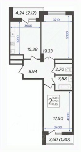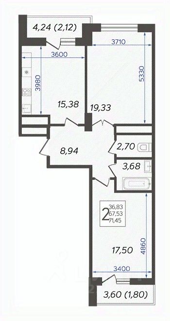 В продаже видовая двухкомнатная квартира с планировкой на 2 стороны света. Просторные комнаты правильной формы без лишних бесполезных метров. ЖК бизнес-класса AVrorA.