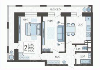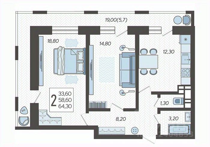 Двухкомнатная квартира с эргономичной планировкой, комнаты правильной формы, просторная кухня, лоджия по всему периметру квартиры с витражным остеклением!