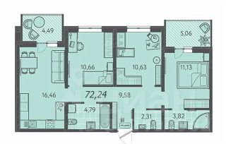 В продаже полноценная трёхкомнатная квартира с эргономичной планировкой.