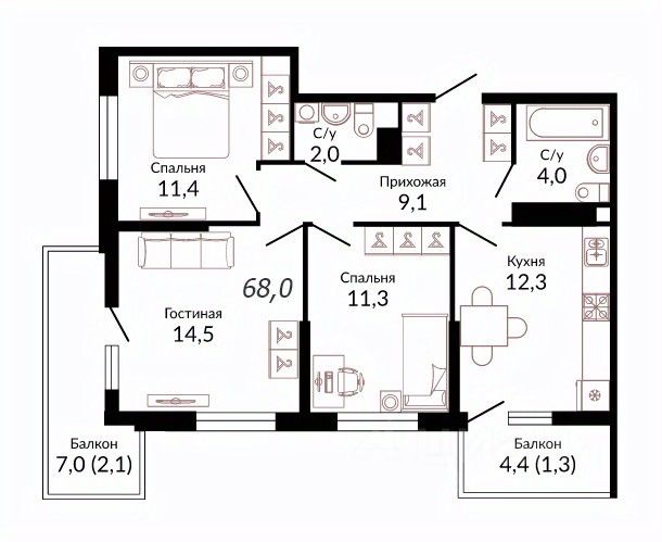 В продаже полноценная трёхкомнатная квартира в жилом комплексе Отражение!