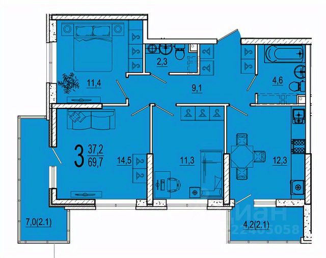 В продаже полноценная трёхкомнатная квартира в жилом комплексе Отражение!
