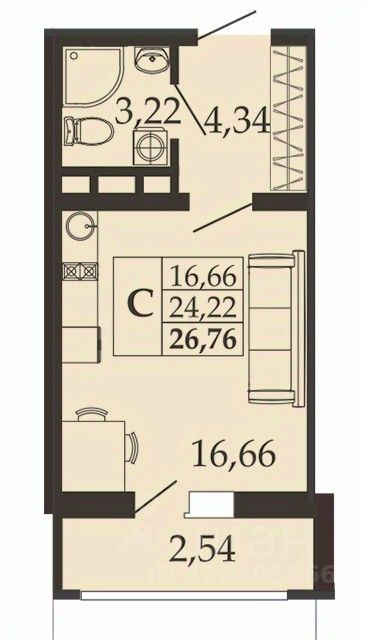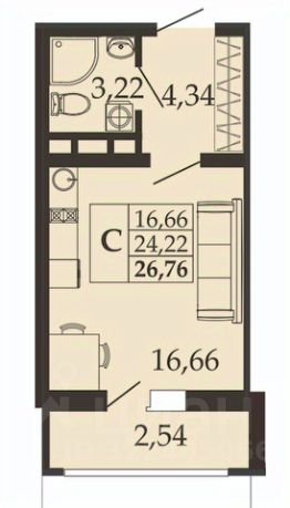 В продаже квартира-студия в жилом комплексе комфорт-класса Родные просторы.