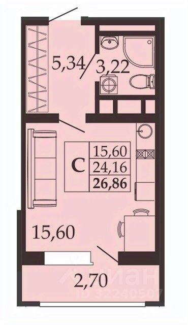 В продаже квартира-студия в жилом комплексе комфорт-класса Родные просторы.
