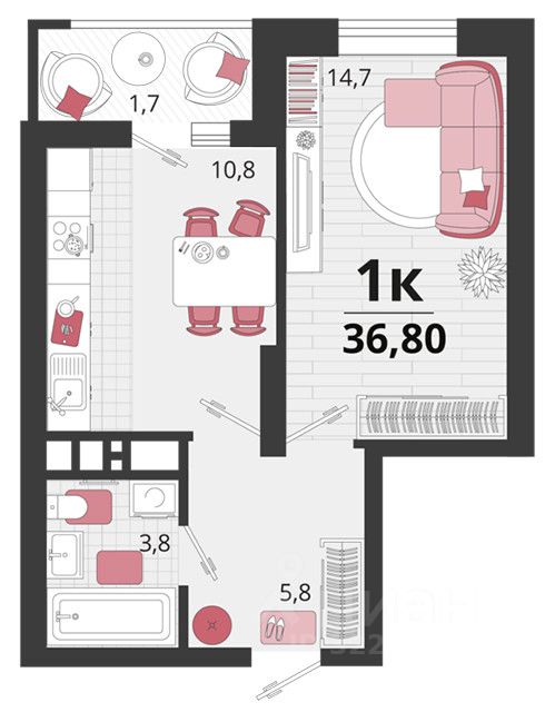 В продаже просторная однокомнатная квартира в жилом комплексе комфорт-класса Родные просторы с предчистовой отделкой!