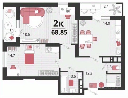 В продаже двухкомнатная квартира в жилом комплексе комфорт-класса Родные просторы с предчистовой отделкой!