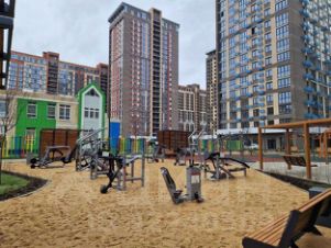 Территория ЖК находится под видеонаблюдением и обустроена современными спортивными и игровыми площадками. Также в комплексе есть:футбольное поле