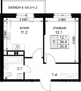 Общая площадь: 37 м