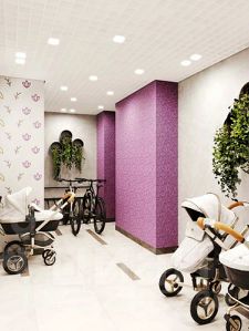 Подъезд в здании оснащен пандусом для колясок, домофоном и высокоскоростными бесшумными лифтами. В доме предусмотрены централизованные коммуникации.