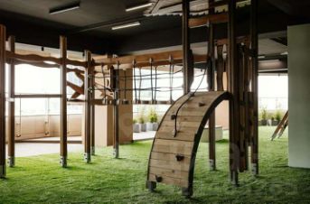 • во внутреннем дворике на уровне 3 этажа здания детская и спортивная площадки