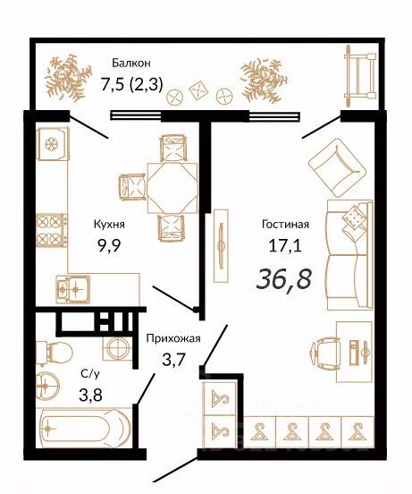 36,8 м²