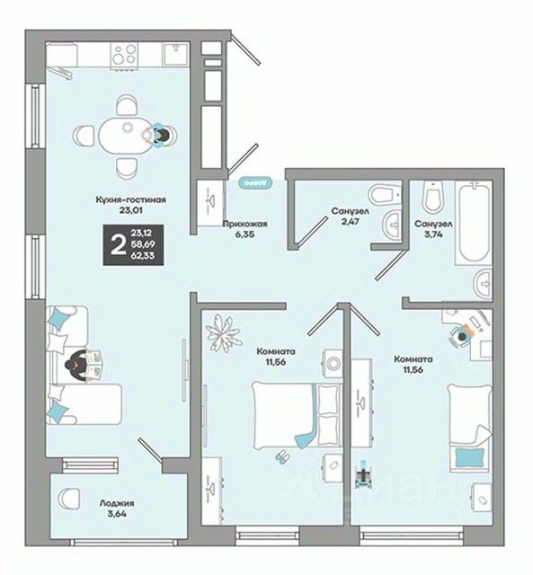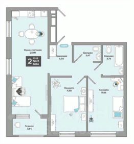 В продаже большая двухкомнатная квартира в предчистовой отделке в Краснодаре!