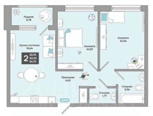 В продаже большая двухкомнатная квартира в предчистовой отделке в Краснодаре!