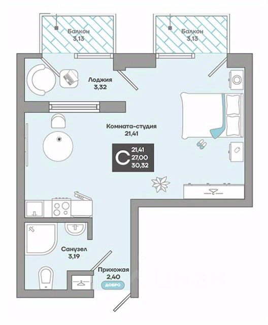 Основные характеристики:Площадь: 30,32 м