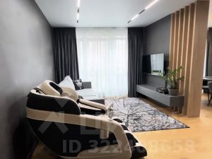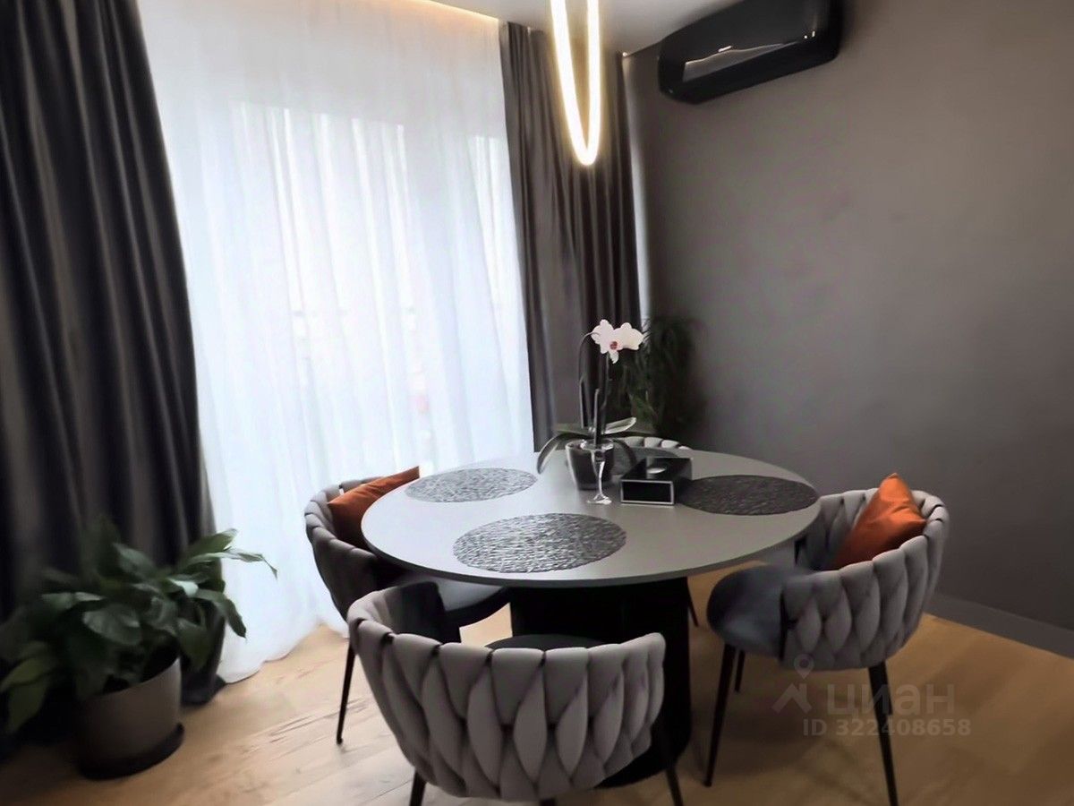 Квартира расположена на 6 этаже. Площадь 63,90 кв.м. Сделан качественный евроремонт в благородных серых тонах, установлена встроенная мебель и техника, с/у с фирменной сантехникой. Панорамное остекление, за счет которого все пространство наполнено естественным светом.