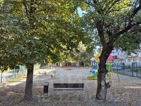 Дом кирпичный, спокойный и зеленый двор, современная детская площадка.