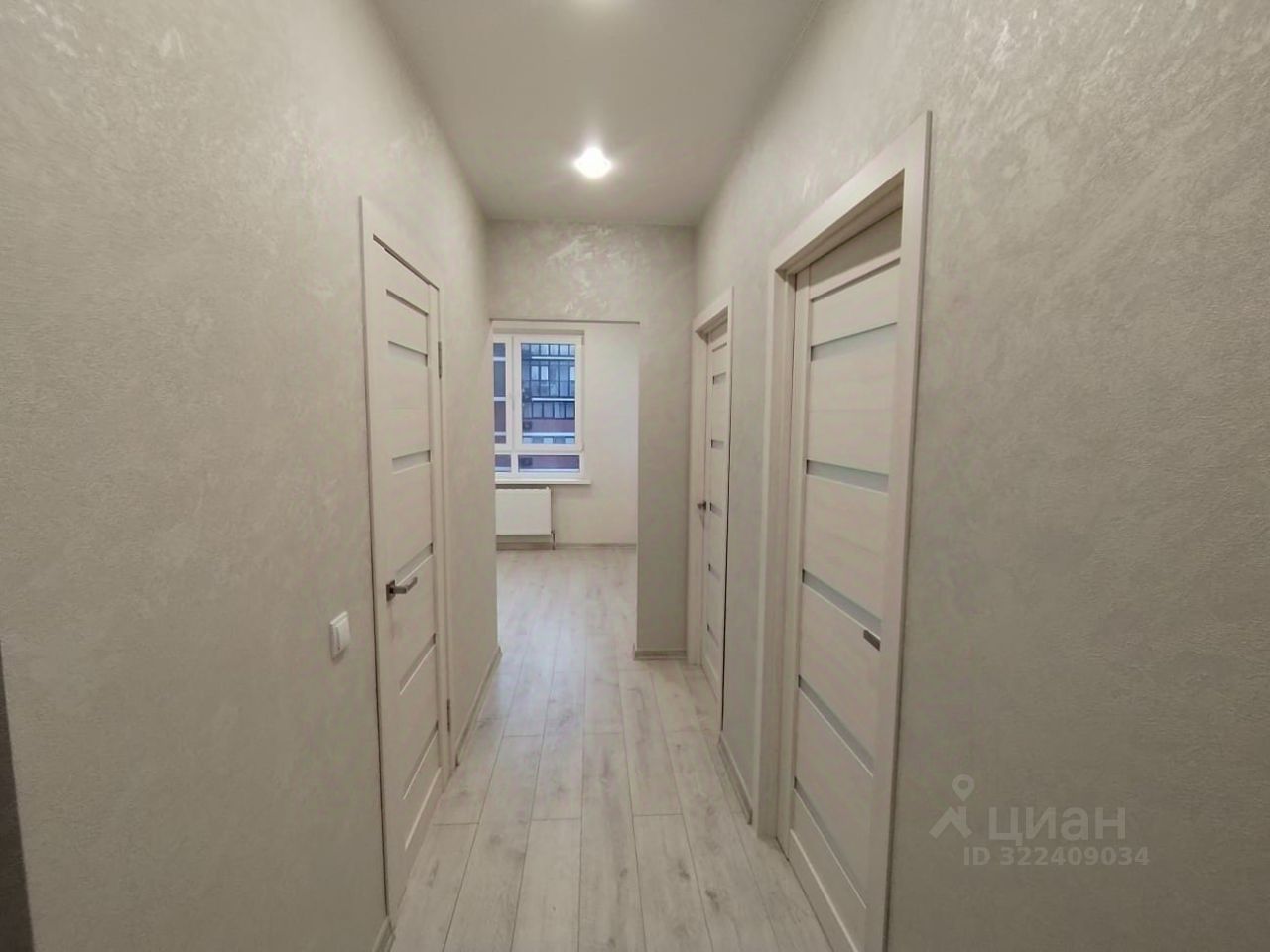 На полу ламинат, обои светлого нейтрального оттенка, белые матовые натяжные потолки с точечными светильниками. Санузел в контрастной плитке под мрамор. Балкон отделан, остеклен.