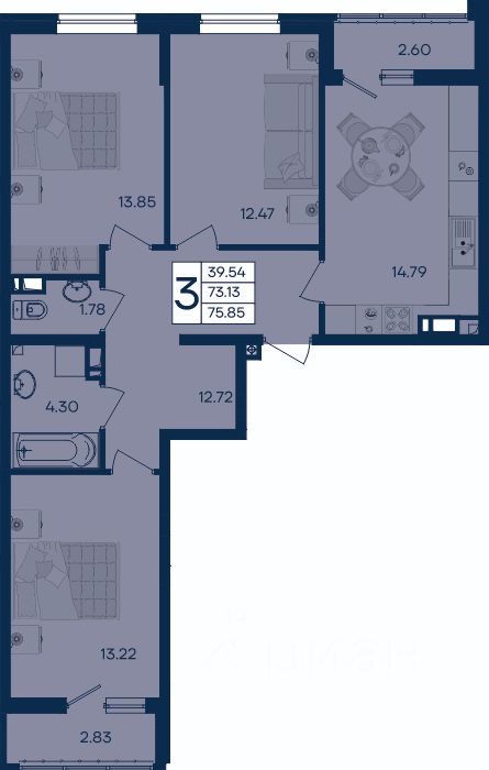 3 комнатная квартира 75.85 м² с ремонтом, на 8 этаже в жилом комплексе "Дом 101".