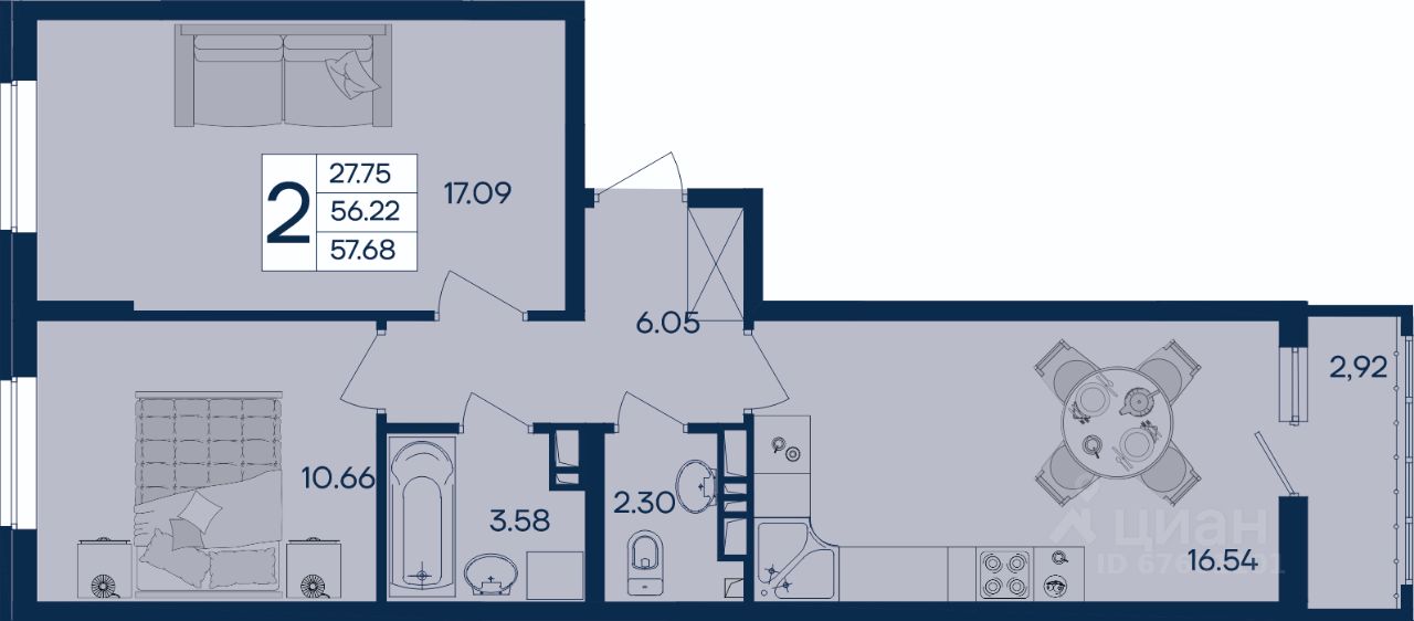 2 комнатная квартира 77.46 м² с ремонтом, на 4 этаже в жилом комплексе "Дом 101".