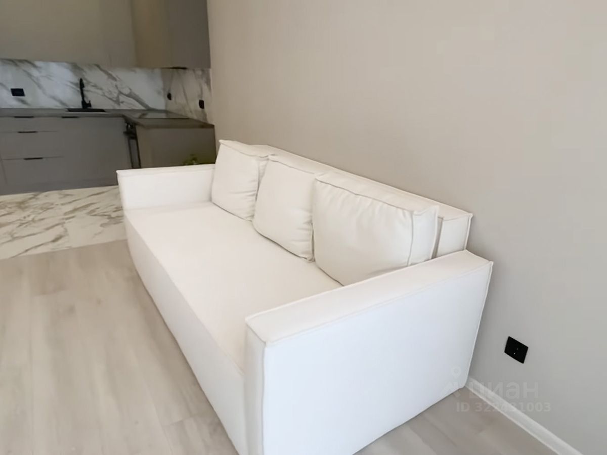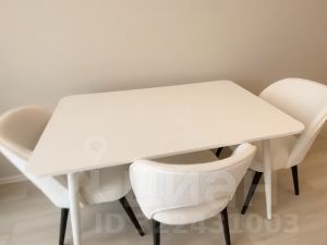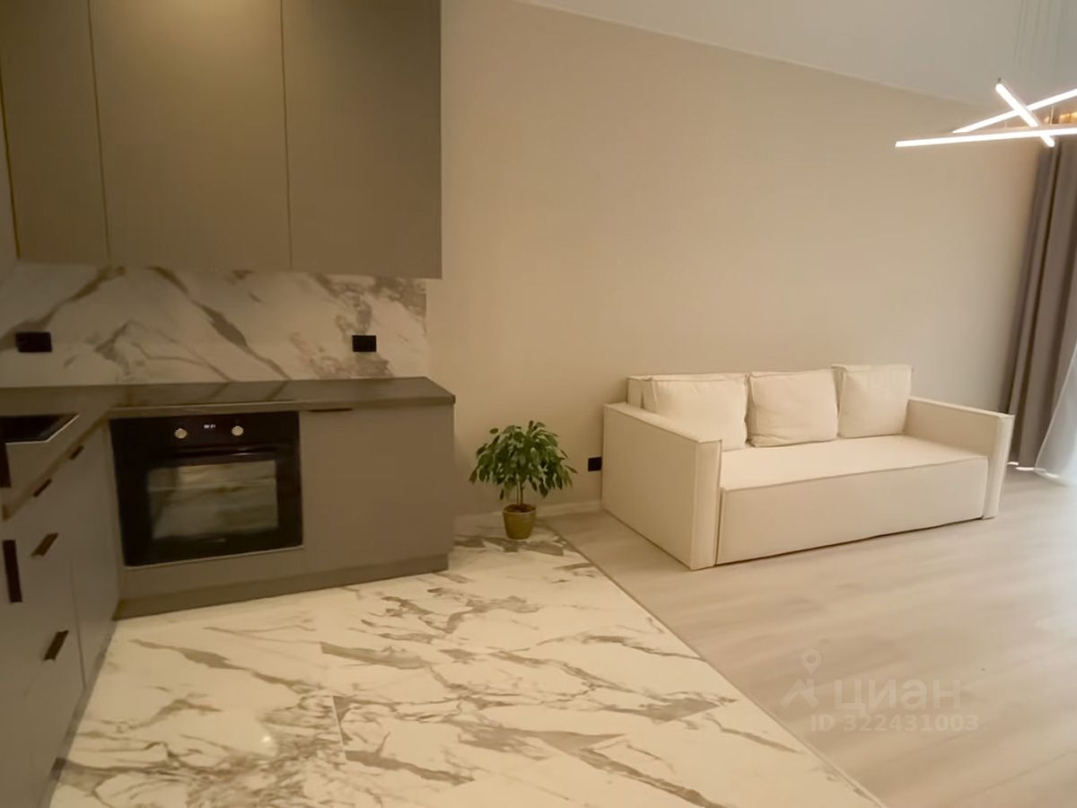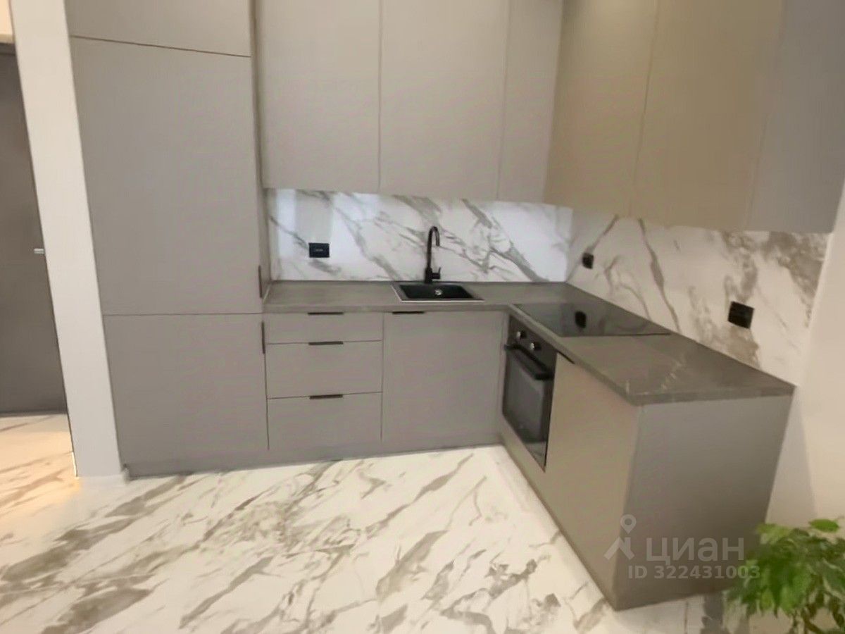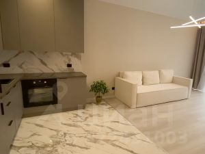 Она расположена на 12-м этаже, откуда открывается живописный вид на город. Ремонт сделан в современном стиле. Интерьер квартиры в благородных тонах, а точечное освещение придаёт ему особую атмосферу. Просторная светлая комната с панорамными окнами наполнена естественным светом. Кухня оснащена встроенной техникой: холодильником, духовкой, варочной панелью и вытяжкой. В холле расположен большой шкаф-купе для удобного хранения вещей. Санузел укомплектован всем необходимым.